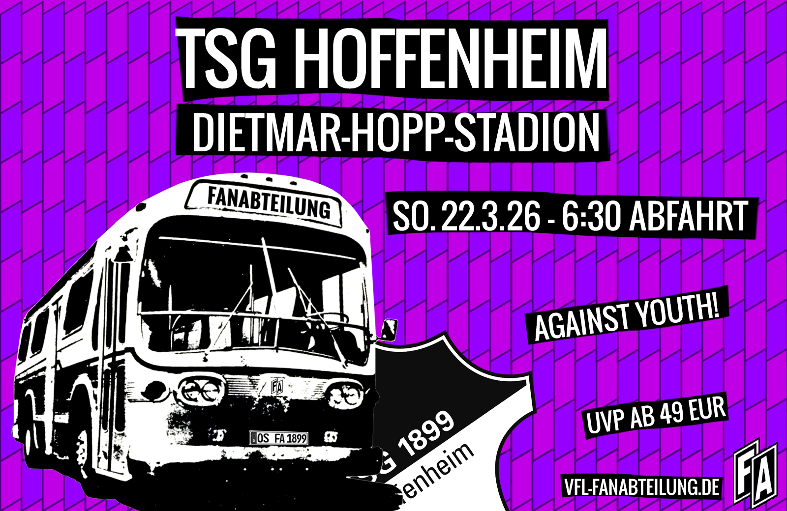 • Aus versicherungsrechtlichen Gründen können wir leider nur noch Ü18-Fahrten anbieten. Wer noch nicht volljährig ist und unserem Team hinterherfahren möchte, kann sich beim Fanprojekt Osnabrück über anstehende U18-Fahrten informieren. (Jugendliche in Begleitung eines Erziehungsberechtigten können selbstverständlich mitfahren.)