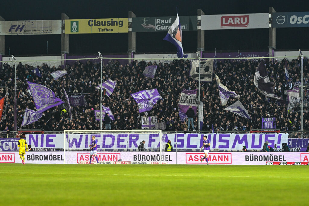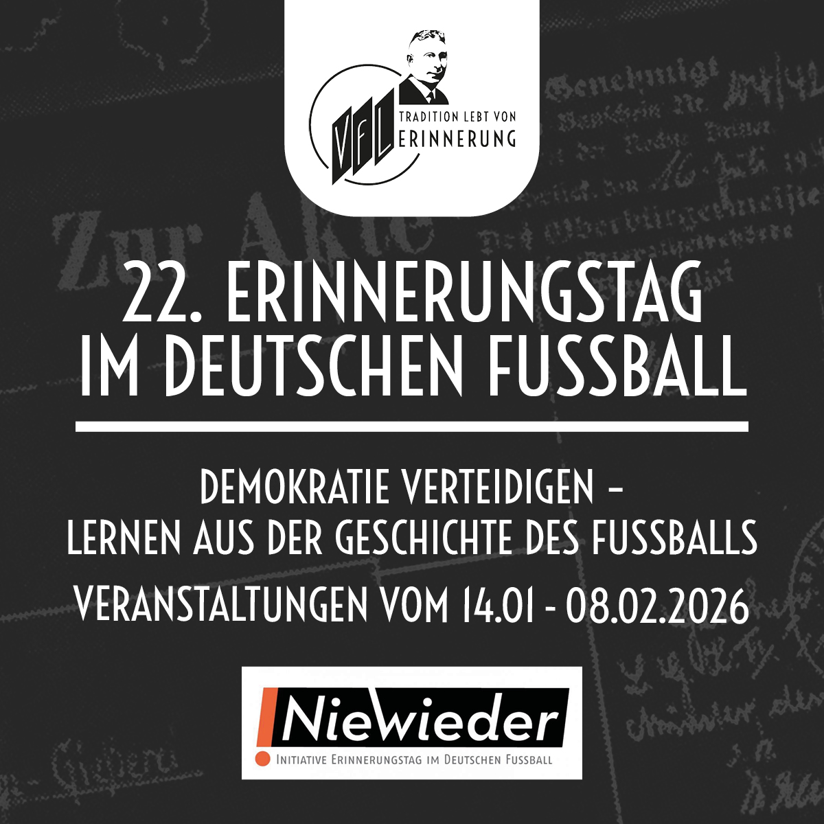 Auch das Heimspiel gegen den TSV 1860 München steht im Zeichen der Erinnerung: Neben sichtbaren Platzierungen der !Nie-wieder-Botschaft werden Vertreterinnen und Vertreter des VfL-Bündnisses Tradition lebt von Erinnerung einen Text verlesen, der im Zeichen des Gedenkens an die Opfer der Diktatur auch aus unserem Verein steht.