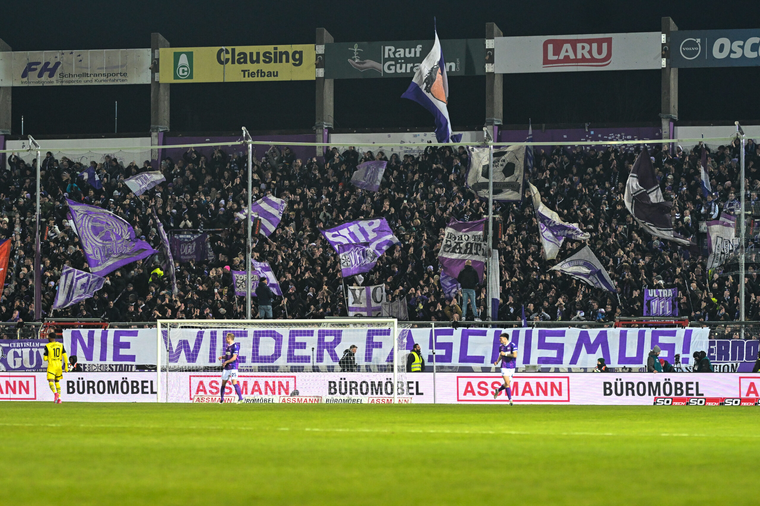 3. Liga – VfL Osnabrück – Borussia Dortmund II am 09.02.2025 an der Bremer Brücke in Osnabrück Ostkurve in Osnabrück, NIE WIEDER FASCHISMUS Foto: osnapix